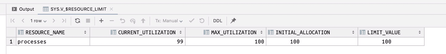 - HikariPool Connection size를 3으로 조절하면, 32*3 = 96 이므로 기본 오라클 프로세스 max인 100 이하라서 수용 가능함.