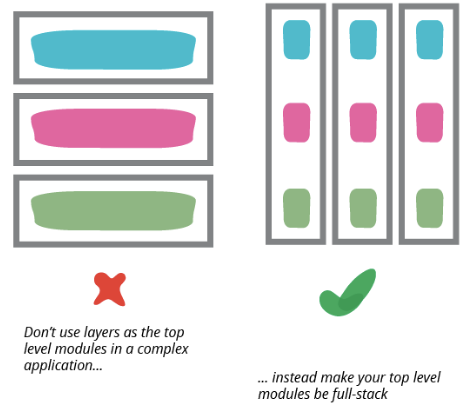 presentation-domain-data 구분 방식을 가로로 적용하는 것은, 소규모 시스템에서는 괜찮지만 대규모 시스템에서는 좋지 않다.