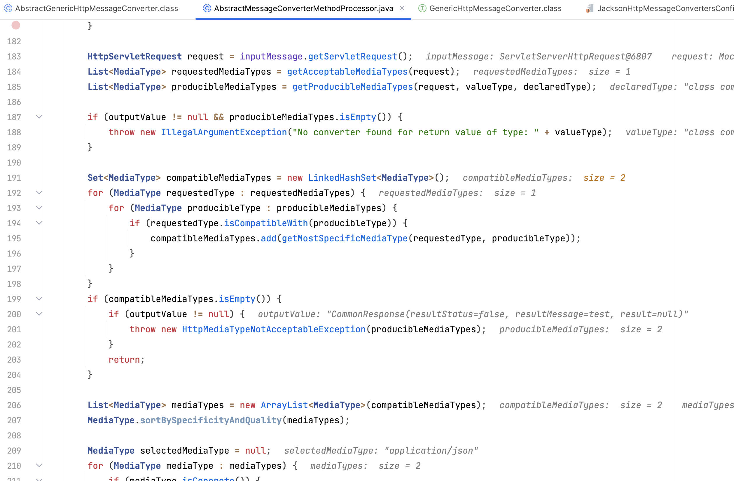 spring-webmvc 4.3.x의 AbstractMessageConverterMethodProcessor.java#L175-L217