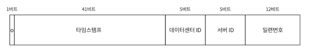 - 데이터센터 위치, 서버 ID가 들어가서 어느 리전의 어느 서버가 채번하든 unique하도록.